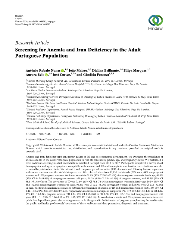 Prevalence of anaemia and iron deficiency in Portugal: the EMPIRE study