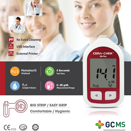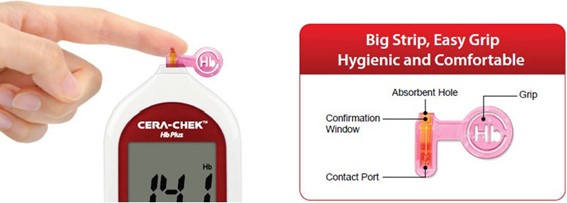 - Otimização de encaixe no dispositivo de leitura Cera-Chek Hb Plus.