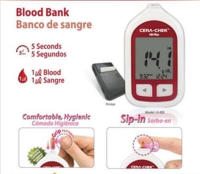 Resultados em 5 segundos, com apenas 1ml de amostra de sangue capilar ou venoso, ideal para gestão de admissão de dadores de sangue.