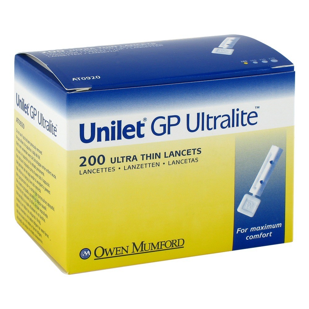 Unilet GP Ultralite possui uma agulha de bisel trifacetado para garantir o máximo conforto.